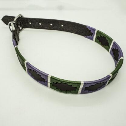 These stunning leather collars will make your pet stand out from the crowd. A beautiful waxed cotton pattern on a soft leather belt with chrome buckle and D-Ring. These have a chrome strap to tuck the end in.