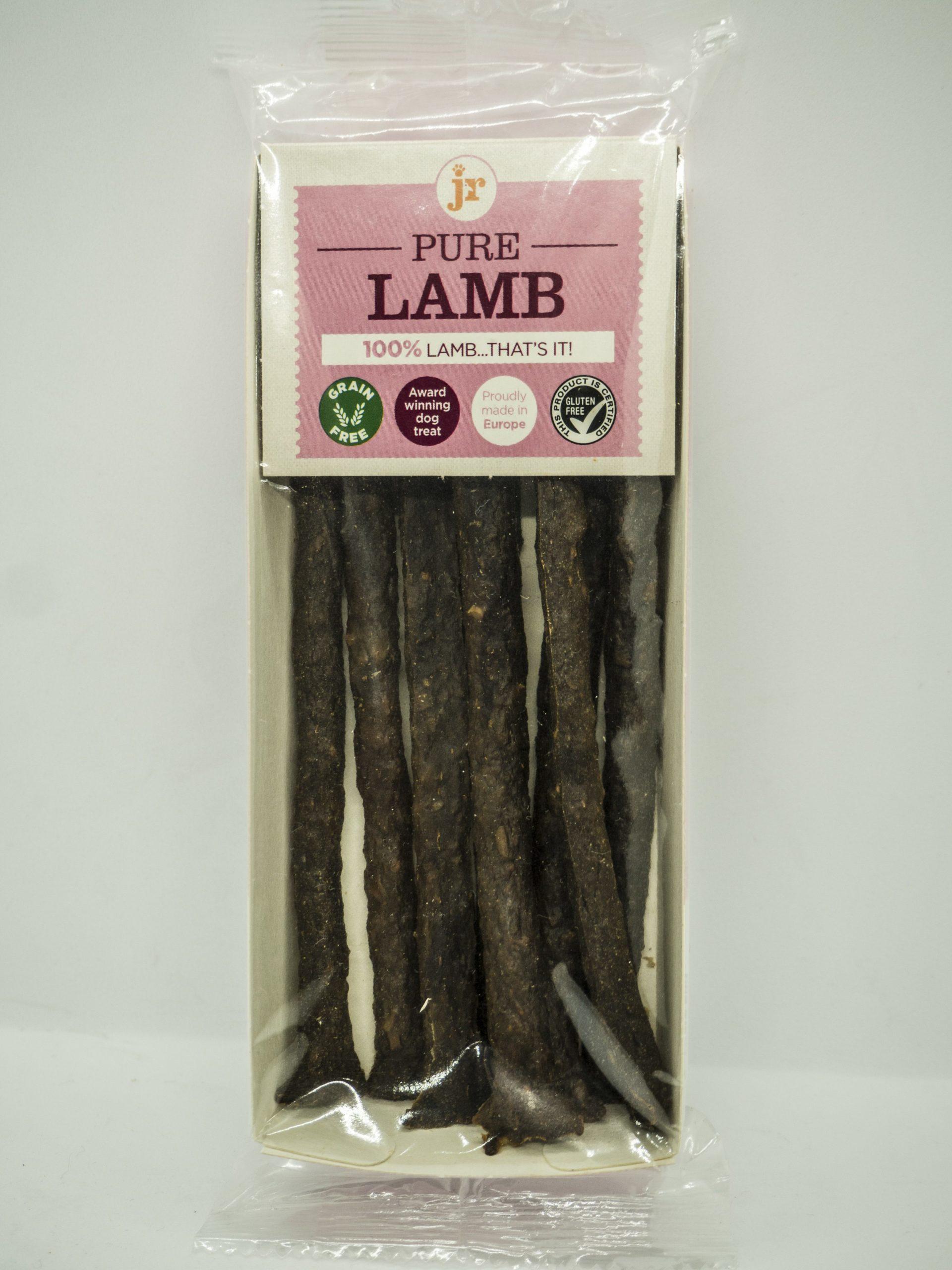 Pure Lamb Meat Sticks 100% natural dog treats. They come in a 50g pack containing around 6 or 7 sticks. They can be broken up into smaller pieces, making them perfect for any size dog. A treat or a more substantial snack! Naturally healthy and totally irresistible.