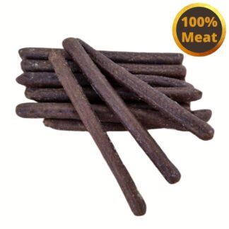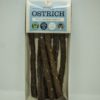 Pure Ostrich Meat Sticks 100% natural dog treats. They come in a 50g pack containing around 6 or 7 sticks. They can be broken up into smaller pieces, making them perfect for any size dog. A treat or a more substantial snack! Naturally healthy and totally irresistible.