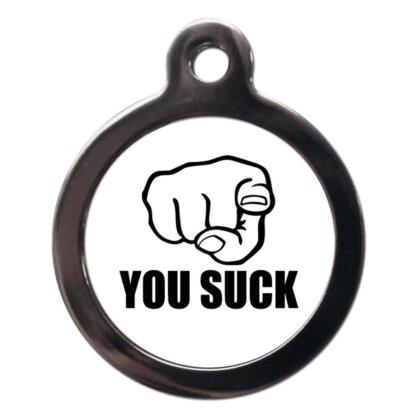 Features your chosen design You Suck CO84 on the front and up to 4 lines of personalised text on the back.