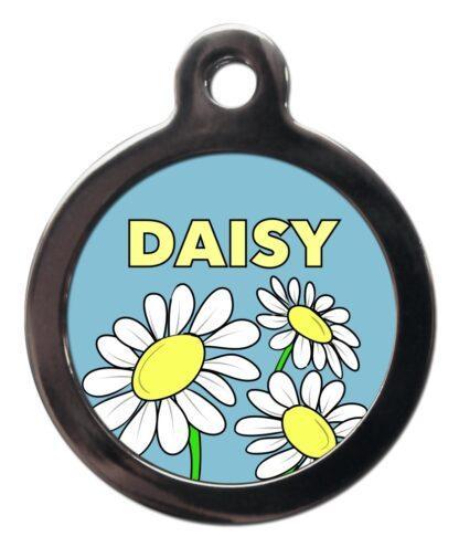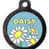 This Daisy NA46 Nature Dog ID Tag is the perfect way to show both you and your dog’s allegiance to nature and the natural world. This Tag has a beautiful colour drawing of three White Daisies with classic yellow centres on a Blue background underneath the word DAISY in Yellow.