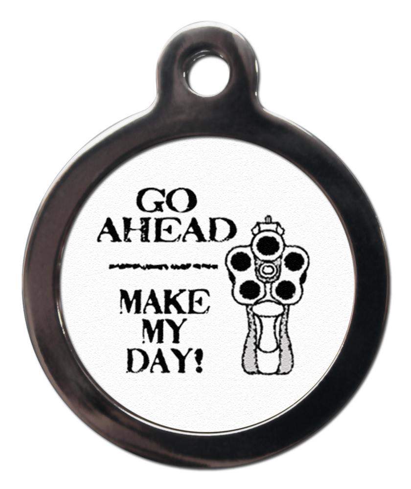 Features your chosen design Go Ahead Make My Day! FT6 on the front and up to 4 lines of personalised text on the back.